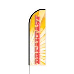 Our 14' Outdoor Banner Flag - Feather Shape helps to advertise your location or brand. The unique shape and design stands out in any crowd and can be seen in almost any environment. The 14' Outdoor Banner Flag - Feather Shape pole system can be used for feather flags measuring approximately 32"W x 100"H. Order just the hardware, accessories, or order a fully printed unit for maximum impact.