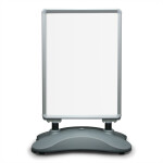 Our Water Based Display Stand is a high quality aluminum and molded plastic sign system that is great for outdoor use. You can unscrew the cap and fill the base with water or sand to increase the weight up to about 85 pounds. The Water Based Display Stand can be tipped to one side and rolled around using the wheels under the base, but when level it wont roll around. There are two heavy-duty spring shocks located between the sign and the base which bend during moderate wind gusts. Loading the signs is very easy using the front loaded snap open and snap closed system. Shipped unassembled, but can be put together in minutes. Order just the hardware, or order a fully printed unit for maximum impact.