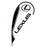 Our 9' Outdoor Banner Flag - Teardrop Shape helps to advertise your location or brand. The unique shape and design stands out in any crowd and can be seen in almost any environment. The ' Outdoor Banner Flag - Teardrop Shape pole system can be used for teardrop flags measuring approximately 37"W x 67"H. Order just the hardware, accessories, or order a fully printed unit for maximum impact.